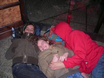 Mas dormir aqui também não é facil...Os guardar teimam em acordar-nos com uns pontapézinhos subtis e dizem com um grande sorriso: "MORGEN! Tem que sair daqui q esta parte (entenda-se "chão") vai ser limpa!"