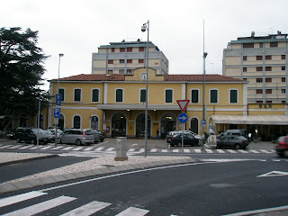 Uma estação de comboio não electrificada...uma bela automotora que nos leva a Vicenza, cidade pela qual é obrigatório passar para ir a qualquer outra cidade.